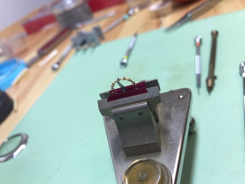 Vintage watches often have certain challenges when servicing. This watch was in great shape but the poise of the balance was quite bad. I had to remove the hair spring and put it on my trusty poising tool and make some adjustments to the balance screws. This successfully closed the gap in the variation in rate to about 25-30 seconds.. Not bad for such an old watch that I’m sure could tell some stories.