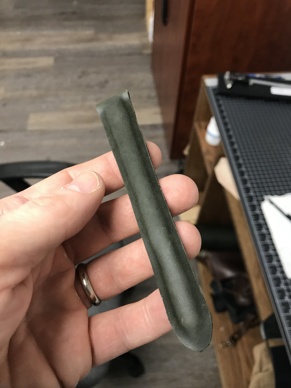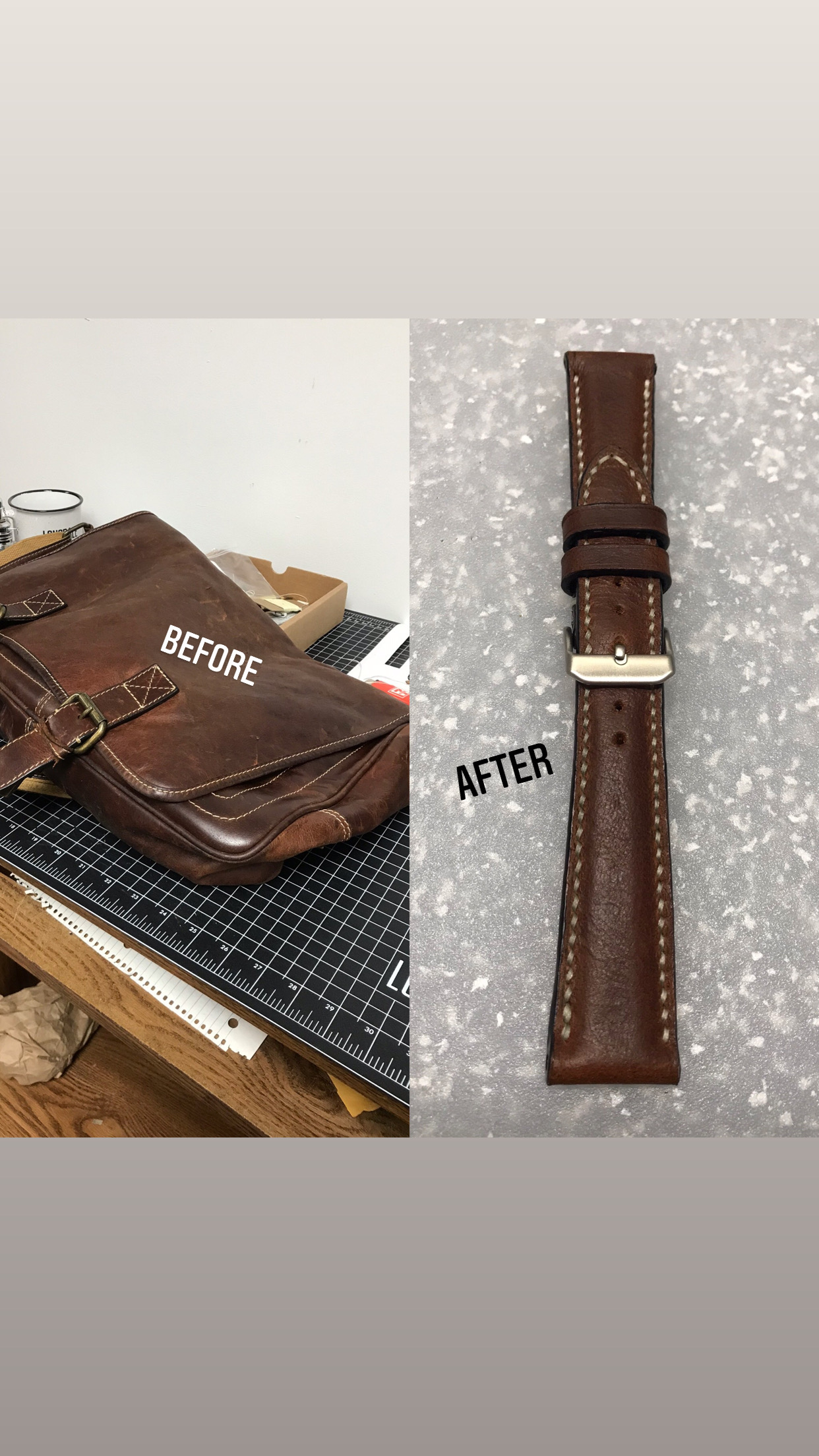 Pricking irons, crease makers, wax thread, stitching pony, cutting matt, hobby knife, granite skiving stone, contact cement etc etc… the list goes on. You don’t need a lot of leather to make a watch strap, so you don’t need to buy that whole 5 square foot patch to get started. I made my first strap after looking through the off-cuts of leather and finding a few small pieces. Needless to say, I won’t show you the first strap I made as it reminds me of the mask that buddy wore in Batman Begins, you know, the burlap one that freaked everyone out who was tripping on that hallucinating flower mist…anyhow, they’ve gotten considerably better and I am excited to learn all the skills and techniques to be able to offer as many styles as possible.